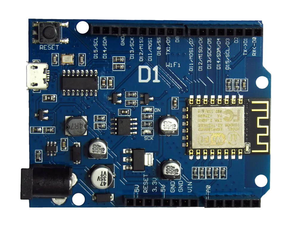 I had an old Wemos D1 lying around for a while. It has a really old and weak ESP8266, which only supports WiFi (many new boards support Bluetooth or ZigBee) but it suited the purpose perfectly: