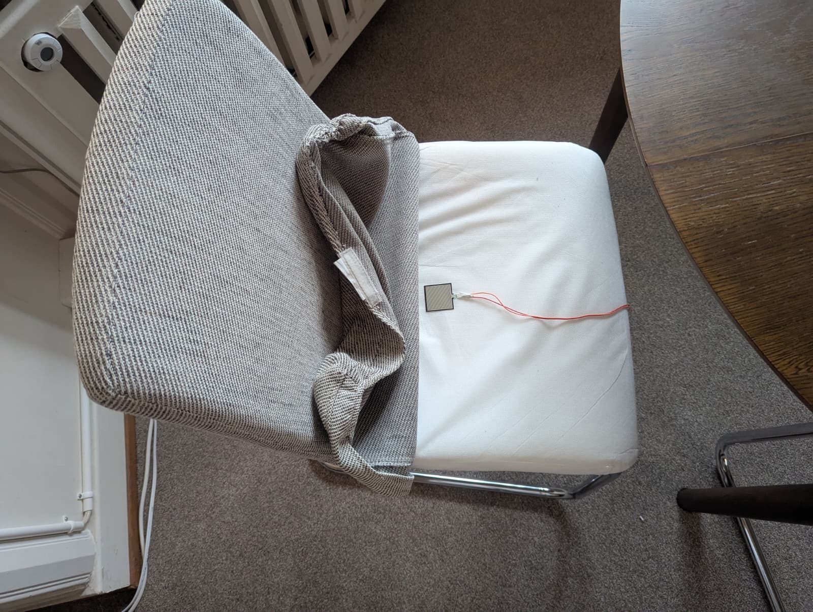 The combination of sensor and board can then be installed whereever you want. I like the form factor of the board, because it allows me to hide it in cushion cracks or below seat skins. The sensor is also so thin and small that you would hardly feel or see it. Look at the final picture above, you can not see the seat sensor at all! I tested it a bit and found it quite reliable. It is quite insensitive though, so I found it to work best when you sit on it, placing a lot of pressure on the sensor. Now do I need a second one for the other seat?…